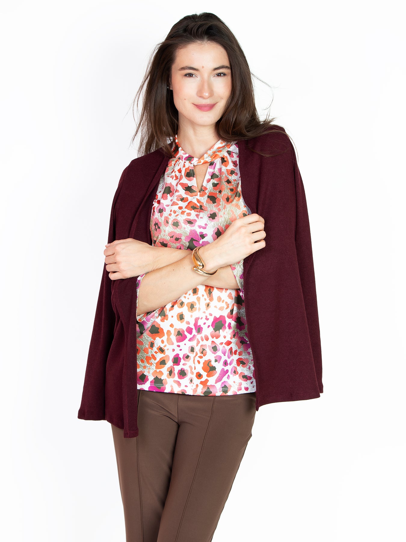- Soft Touch Cardigan: long sleeves with fancy buttons, open-front design