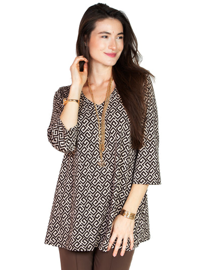 Kim & Co Haut imprimé brésilien à manches 3/4 et col torsadé avec trou de serrure
